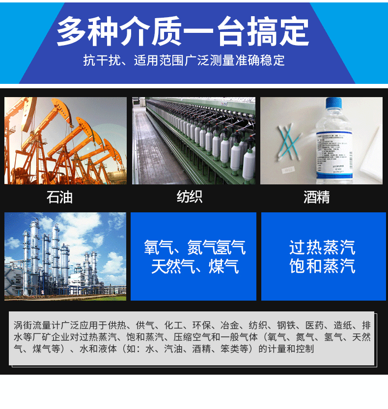 智能渦街流量計主要用于工業(yè)管道介質(zhì)流體的流量測量,如氣體、液體、蒸氣等多種介質(zhì)。特點(diǎn)是壓力損失小,量程范圍大,精度高,在測量工況體積流量時幾乎不受流體密度、壓力、溫度、粘度等參數(shù)的影響。無可動機(jī)械零件,因此智能渦街流量計可靠性高,維護(hù)量小,儀表參數(shù)能長期穩(wěn)定。采用壓電應(yīng)力式傳感器,可靠性高,可在-20℃~+450℃的工作溫度范圍內(nèi)工作。有模擬標(biāo)準(zhǔn)信號,也有數(shù)字脈沖信號輸出,容易與計算機(jī)等數(shù)字系統(tǒng)配套使用,是一種比較先進(jìn)、理想的流量儀表。