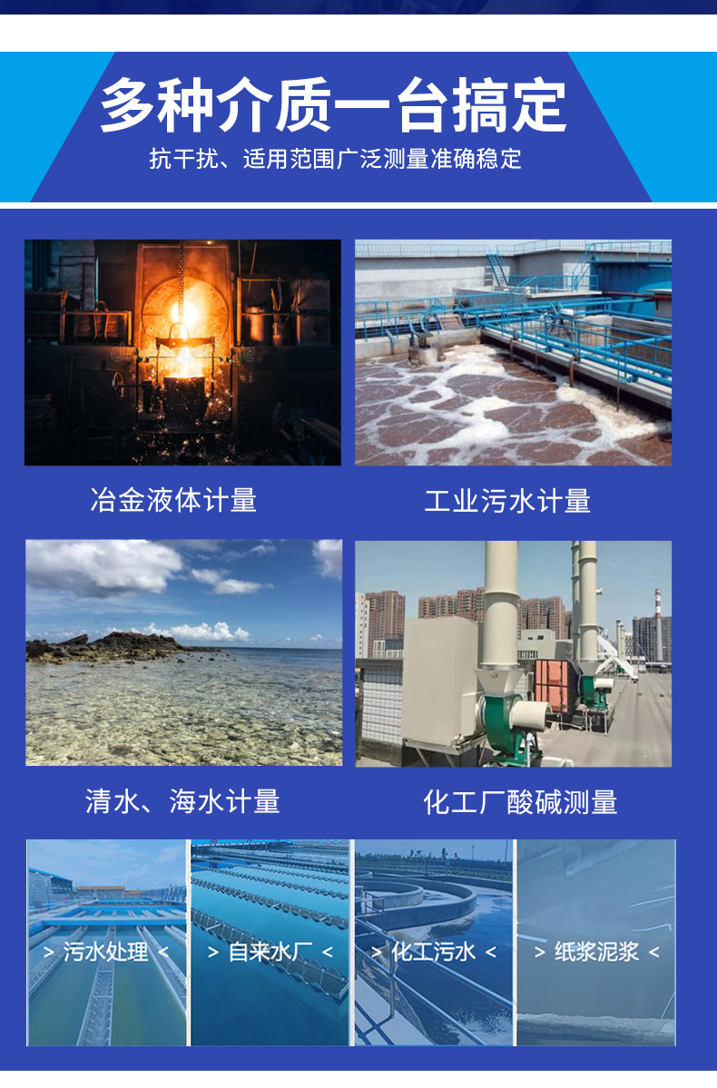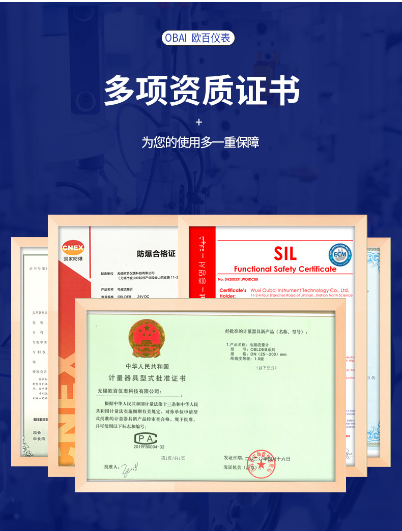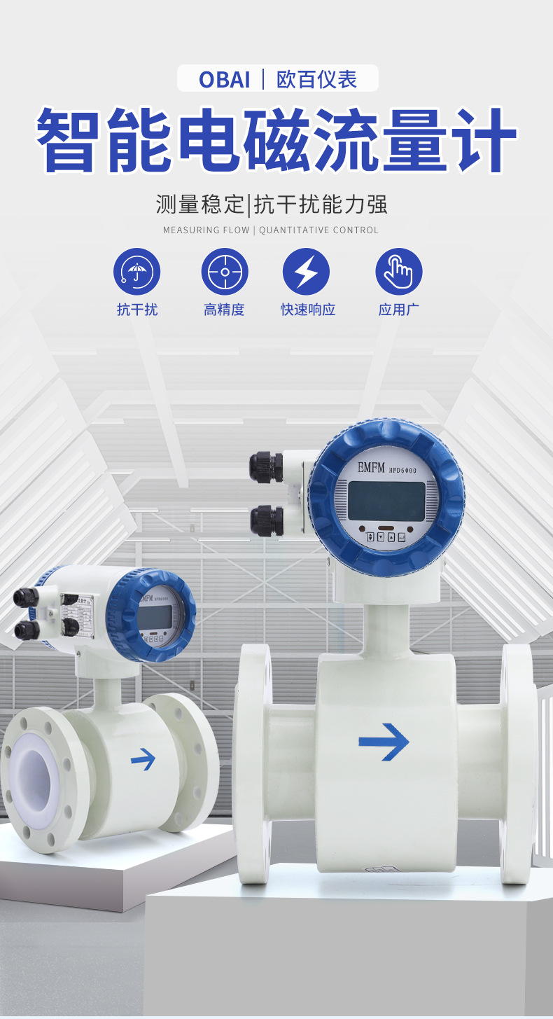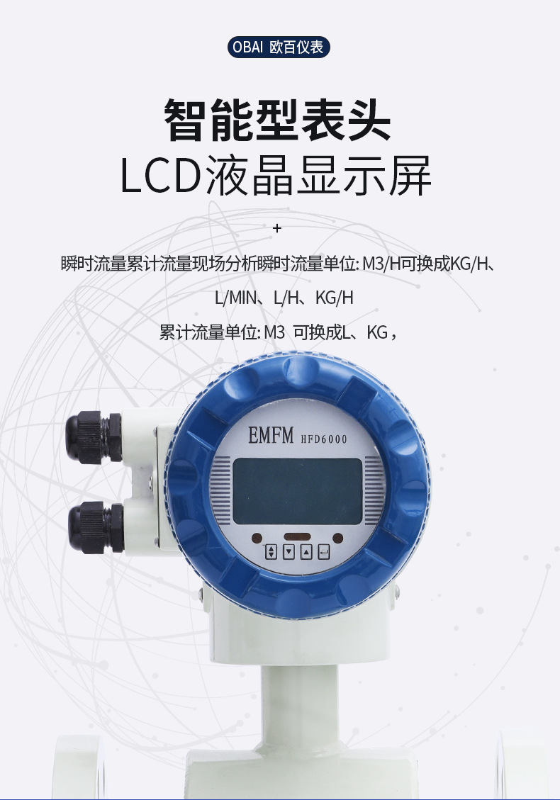 OBLDE系列電磁流量計產(chǎn)品概述OBLDE型電磁流量計適用測量封閉管道中導電液體和漿液的體積流量,如潔凈水、污水、各種酸堿鹽溶液、泥漿、礦漿、紙漿及食品方面的液體等。分體式配有專有的屏蔽線、可分為IP68防水型(潛水地下5米保證壽命)、遠傳顯示自動抄表型、耐強酸、強堿、硫酸、硝酸、工業(yè)廢水等。